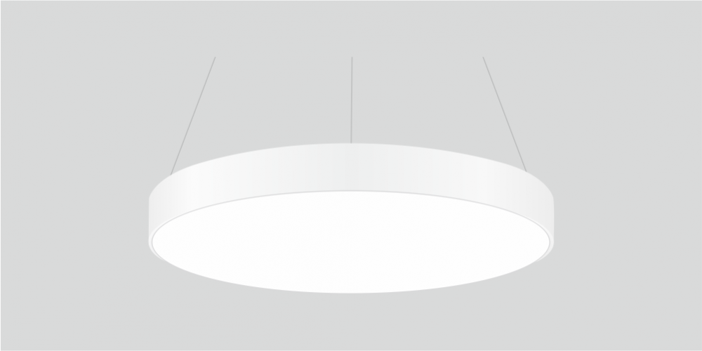 Светодиодный светильник в виде круга LiNE-PRO мощностью 50 Вт и диаметром 600 мм изготовлен из алюминиевого основания, с установленными на него светодиодными модулями. Возможна различная цветовая температура - 3000К, 4000К, 5000К, 6000К. Боковины могут быть изготовлены из плотного ПВХ различного цвета, на выбор или светотехнического акрила и выполнять функцию рассеивателя. Блок питания внутри корпуса светильника. Монтаж на тросовых подвесах или непосредственно к потолку или стене.