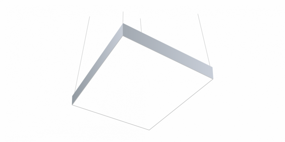Светодиодный светильник в виде квадрата LiNE-PRO мощностью 200 Вт и 1200 мм изготовлен из алюминиевого основания, с установленными на него светодиодными модулями. Возможна различная цветовая температура - 3000К, 4000К, 5000К, 600К. Боковины могут быть изготовлены из плотного ПВХ различного цвета, на выбор или светотехнического акрила и выполнять функцию рассеивателя. Блок питания внутри корпуса светильника. Монтаж на тросовых подвесах или непосредственно к потолку или стене.