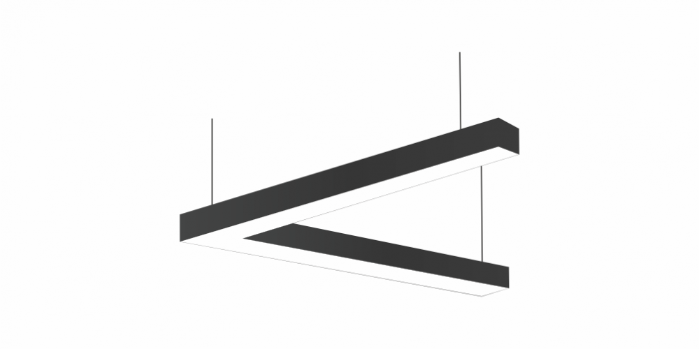 Светодиодный Угловой светильник LiNE-Pro 45гр. 1000х1000mm 40W 4000K черный предназначен для накладного или подвесного монтажа на тросовые подвесы. Изготовлен из сплошного сварного алюминиевого профиля в виде угла под 45 градусов. Высота установки светильника регулируется подвесом с цанговым тросовым зажимом и может варьироваться от 0,05 метра до 4 метров от основного потолка. Светильник имеет равномерную засветку по всей площади рассеивателя. Источник питания находится внутри корпуса. Торцевые заглушки входят в комплект. Возможно изготовление светильника с магистральной проводкой для соединения нескольких светильников в сплошную конструкцию.