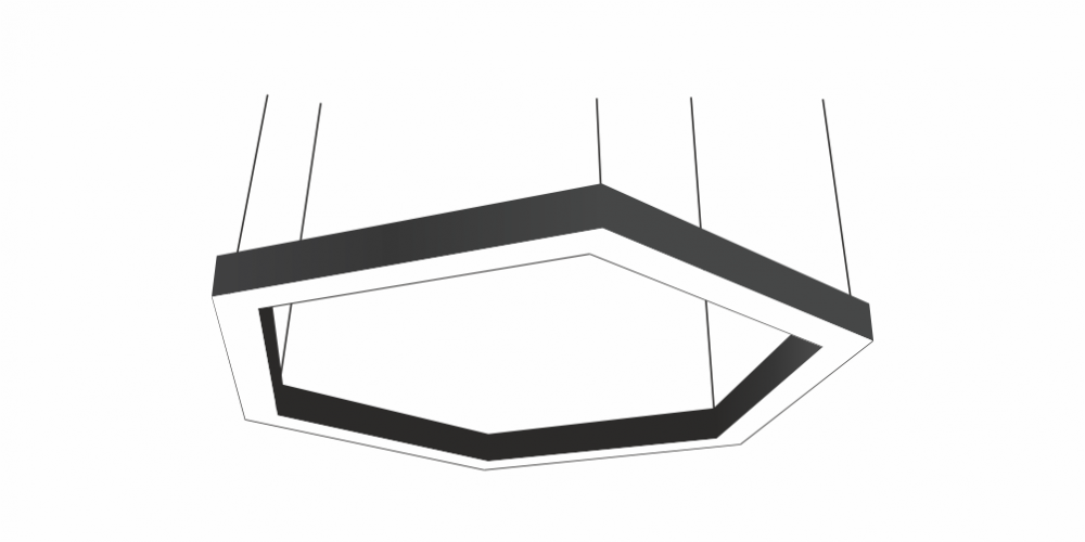 Светодиодный Шестиугольный светильник LiNE-Pro 6х250mm 60W 5000K черный предназначен для накладного или подвесного монтажа на тросовые подвесы. Изготовлен из сплошного сварного алюминиевого профиля в виде шестиугольника. Высота установки светильника регулируется подвесом с цанговым тросовым зажимом и может варьироваться от 0,05 метра до 4 метров от основного потолка. Шестиугольный линейный светильник имеет равномерную засветку по всей площади рассеивателя. Источник питания находится внутри корпуса.