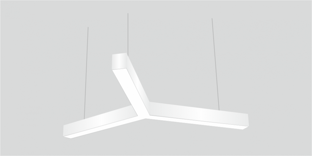 Светодиодный Лучевой светильник LiNE-Pro 3х500mm 60W 4000K белый предназначен для накладного или подвесного монтажа на тросовые подвесы. Изготовлен из сплошного сварного алюминиевого профиля в виде буквы «Y». Высота установки светильника регулируется подвесом с цанговым тросовым зажимом и может варьироваться от 0,05 метра до 4 метров от основного потолка. Светильник имеет равномерную засветку по всей площади рассеивателя. Источник питания находится внутри корпуса. Торцевые заглушки входят в комплект. Возможно изготовление светильника с магистральной проводкой для соединения нескольких светильников в сплошную конструкцию.