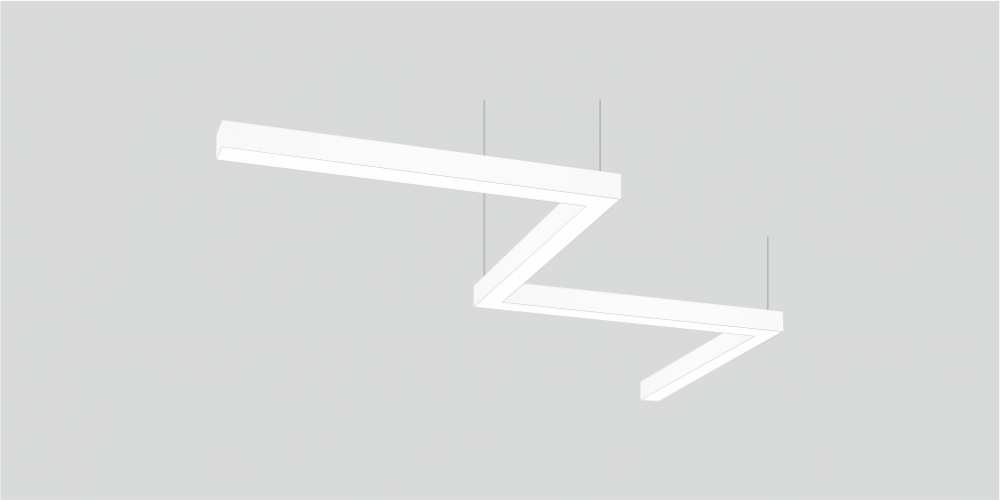 Фигурный светодиодный Светильник Зигзаг LiNE-Pro 4х500mm 40W 3000K белый предназначен для накладного или подвесного монтажа на тросовые подвесы. Изготовлен из сплошного сварного алюминиевого профиля в виде зигзага. Высота установки светильника регулируется подвесом с цанговым тросовым зажимом и может варьироваться от 0,05 метра до 4 метров от основного потолка. Светильник Зигзаг имеет равномерную засветку по всей площади рассеивателя. Источник питания находится внутри корпуса. Торцевые заглушки входят в комплект. Возможно изготовление светильника с магистральной проводкой для соединения нескольких светильников в сплошную конструкцию