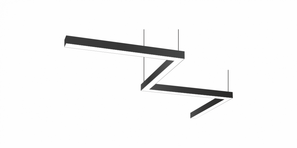 Фигурный светодиодный Светильник Зигзаг LiNE-Pro 4х500mm 40W 6000K черный предназначен для накладного или подвесного монтажа на тросовые подвесы. Изготовлен из сплошного сварного алюминиевого профиля в виде зигзага. Высота установки светильника регулируется подвесом с цанговым тросовым зажимом и может варьироваться от 0,05 метра до 4 метров от основного потолка. Светильник Зигзаг имеет равномерную засветку по всей площади рассеивателя. Источник питания находится внутри корпуса. Торцевые заглушки входят в комплект. Возможно изготовление светильника с магистральной проводкой для соединения нескольких светильников в сплошную конструкцию
