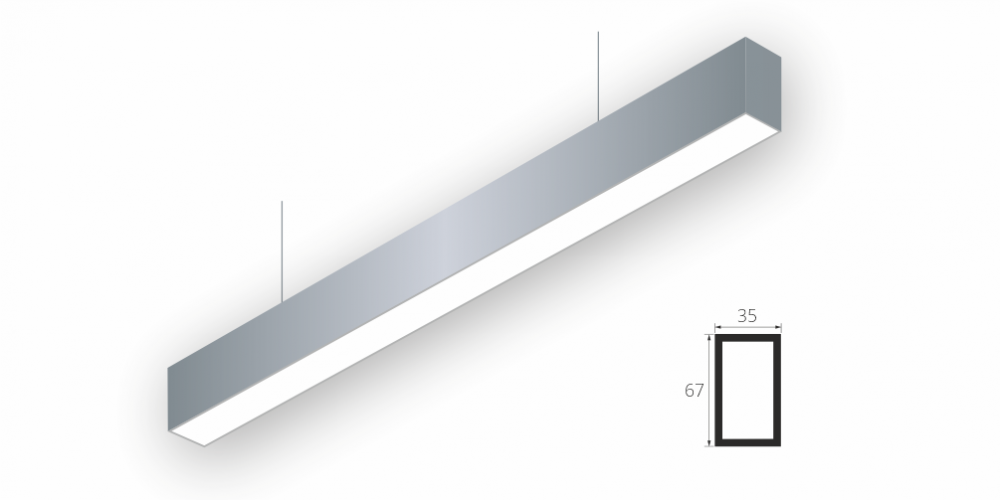 Линейный светодиодный Подвесной светильник LiNE-Pro 67x35 1000mm 15W 4000K Серый предназначен для подвесного монтажа на тросовые подвесы. Изготовлен из алюминиевого профиля длиной 1000 мм, мощностью 15 Вт c цветовой температурой 4000 K, цвет корпуса Серый. Высота установки светильника регулируется подвесом с цанговым тросовым зажимом и может варьироваться от 0,05 метра до 4 метров от основного потолка. Линейный светильник может использоваться для реечных потолков. Светильник имеет равномерную засветку по всей площади рассеивателя. Источник питания находится внутри корпуса. Торцевые заглушки входят в комплект.