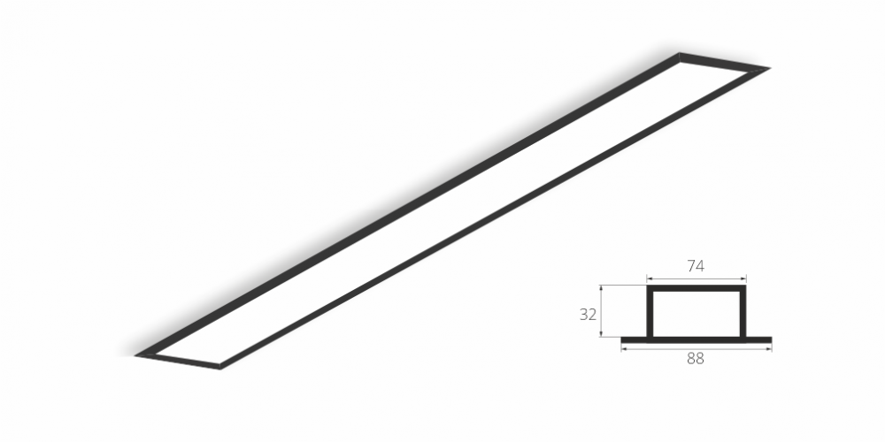 Линейный светодиодный Встраиваемый светильник LiNE-Pro 32x88 1750mm 70W 4000K Черный предназначен для встраиваемого монтажа в потолки из гипсокартона либо в плитки потолка армстронг. Изготовлен из алюминиевого профиля длиной 1750 мм, мощностью 70 Вт c цветовой температурой 4000 K, цвет корпуса Черный. Крепится светильник с помощью комплекта прижимных скоб. Светильник имеет равномерную засветку по всей площади рассеивателя. Источник питания и торцевые заглушки входят в комплект.