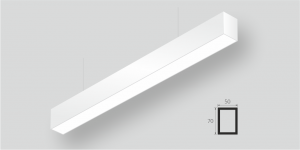 Линейный модульный светодиодный Подвесной светильник LiNE-Pro 70x50 1000mm 30W 6000K Белый предназначен для подвесного монтажа на тросовые подвесы. Изготовлен из алюминиевого профиля длиной 1000 мм, мощностью 30 Вт c цветовой температурой 6000 K, цвет корпуса Белый. Светильники соединяются в сплошную линию с помощью комплекта линейного соединения и сплошной магистральной проводки. Светильник имеет равномерную засветку по всей площади рассеивателя. Источник питания находится внутри корпуса.