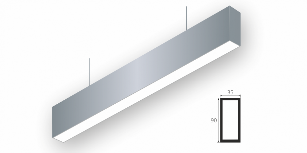 Линейный модульный светодиодный Подвесной светильник LiNE-Pro 90x35 2000mm 90W 4000K Серый предназначен для подвесного монтажа на тросовые подвесы. Изготовлен из алюминиевого профиля длиной 2000 мм, мощностью 90 Вт c цветовой температурой 4000 K, цвет корпуса Серый. Светильники соединяются в сплошную линию с помощью комплекта линейного соединения и сплошной магистральной проводки. Светильник имеет равномерную засветку по всей площади рассеивателя. Источник питания находится внутри корпуса.